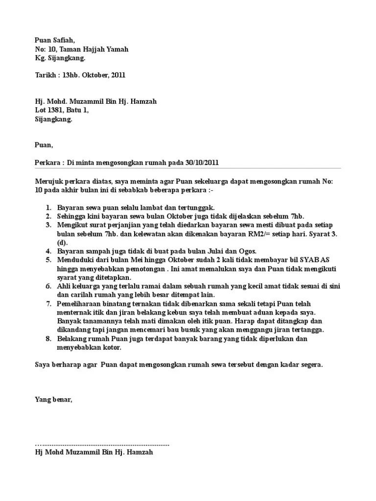 33, jalan budiman 1/1 taman desa budiman. Contoh surat penamatan sewa rumah. (d) pada tarikh penamatan perjanjian ini tuan rumah hendaklah memulangkan semua cengkeram (tempoh cangkeram) bulan yang diberikan oleh penyewa di bawah klausa 2 . Maklumat mengenai penyewa ganti, jika ada. Contoh surat perjanjian sewa kedai atau rumah. Notis pemberitahuan tamat menyewa bilik/premis . Rental shop, with regret, self termination, . Garis panduan tamat kontrak 290906 via slideshare. Surat rasmi notis keluar rumah surat gg contoh surat . Terdapat contoh surat penamatan perjanjian .